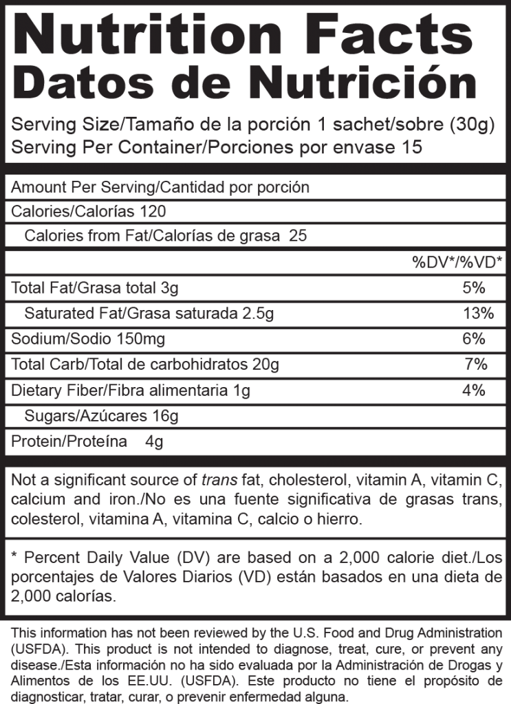 | Producto | Nutritional Facts |