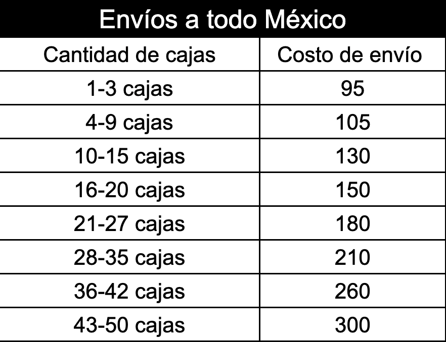 Nota: Estos precios no incluyen los costos de envío.